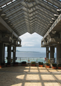 美ら海水族館は、えらいでっかい水槽にえらいでっかいジンベエザメがいることで有名だ。こんなに外の天気がいいので、館内に入ってしまうのが惜しいくらいだが、なにそんなにでっかいのならちょっと見てやろう。